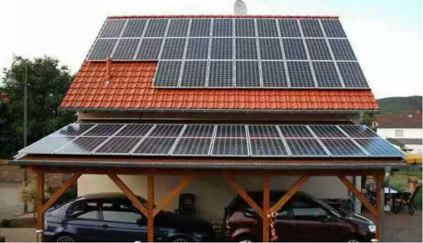 高性能的太陽能電池組件通過支架被集中安裝在屋頂上,經(jīng)過串聯(lián)并聯(lián)之后組成太陽能電池方陣,太陽能電池方陣吸收太陽光,并產(chǎn)生直流電, 經(jīng)過光伏逆變器后轉(zhuǎn)化為可供家用電器使用的交流電,剩余電可以上傳至電網(wǎng)中,獲得相應(yīng)的電價收入。